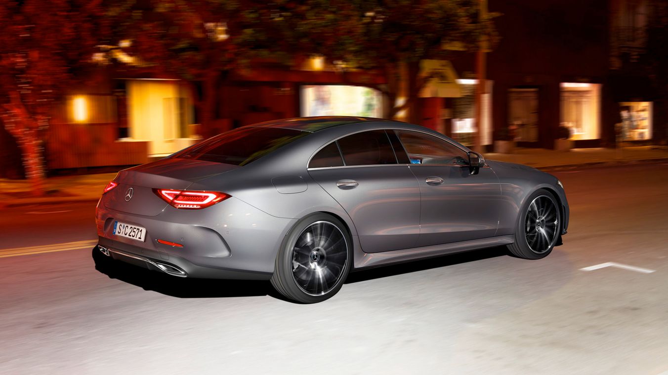 Pour cette 3ème génération, côté look, les fondamentaux de la CLS sont toujours là, avec une ligne de pavillon basse qui fait sa douceur féline, une surface vitrée réduite et un arrière plongeant. Dans le détail, on note cependant une simplification des lignes, avec des flancs plus épurés. À l'avant, la calandre a sérieusement grandie, et est désormais encadrée par des optiques obliques affinées. Notre modèle d'essai en Martinique est basée à l'extérieur sur l'AMG Line. Le regard est immédiatement attiré par la grille de calandre diamant, les inserts en chrome mat et les jantes alliage AMG 20 pouces multibranches en finition noir brillant avec rebord brillant. Les phares MULTBEAM LED garantissent une visibilité et une sécurité maximales sous nos lattitudes.