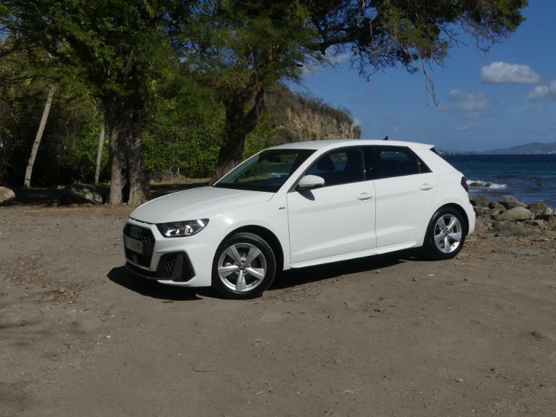Jusqu’à il y a quelques mois encore, quand on évoquait l’Audi A1, on pensait à une voiture plutôt féminine, jolie, tout en restant passe partout. Ce nouveau millésime bénéficie d'une nouvelle plateforme et sans possible doute, il en résulte une vraie métamorphose aux dessins résolument sportifs. Alors que 2 clients sur 3 sont en fait des clientes, le constructeur a souhaité muscler un peu plus son design. Non sans rappeler le concept Sport Quattro de 2013, elle dit adieu aux lignes douces et bourgeoises pour des arrêtes plus vives et marquées. Avec une signature lumineuse très personnalisée, un large custode pour un aspect plus sportif, 3 ouïes qui ont pu naître sur certains modèles ayant fait la légende de la marque (l'Audi Quattro), et sur cette version S-Line une calandre Single Frame plus imposante de vraies fausses entrée d'airs reliées par la signature AUDI des modèles de la marque les plus sportifs justement… Elle arbore donc de nombreux arguments pour séduire le marché martiniquais. Sans oublier un panel de jantes ou personnalisations pour satisfaire les goûts du plus grand nombre, tous sexes et âges confondus.